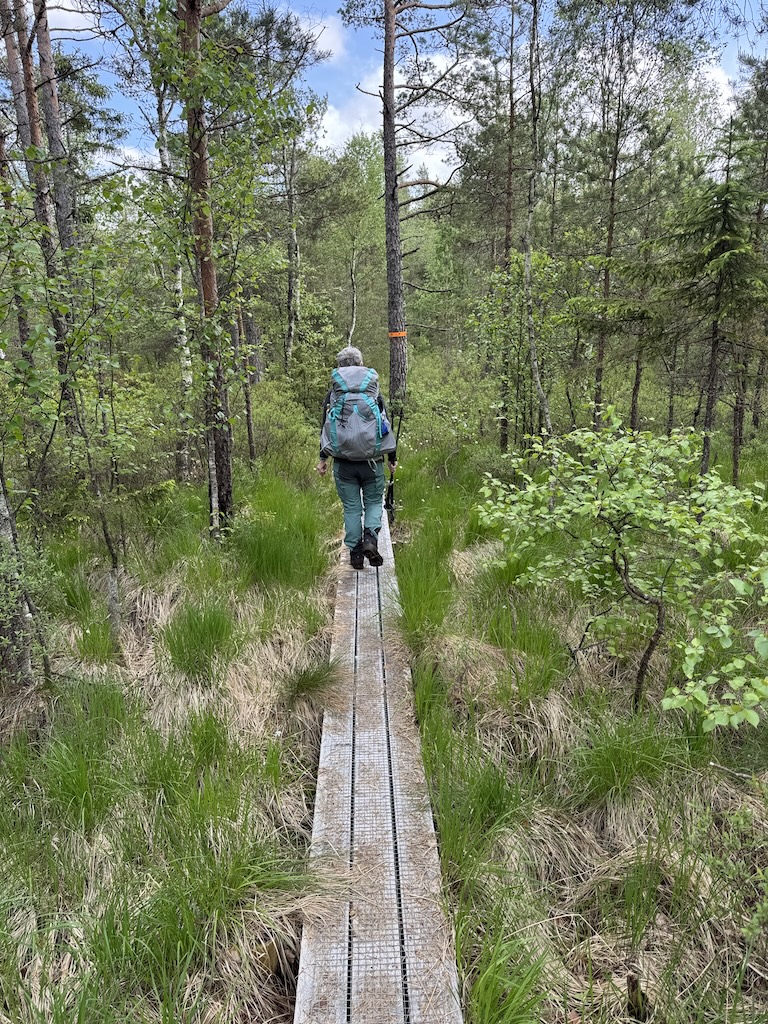 Bohusleden ist ein klassischer und gut ausgebauter Fernwanderweg in Westschweden, auf naturbelassenen Wanderpfaden, Wurzelpfaden, Schotterwegen oder Wirtschaftswegen, alles ist dabei. Es geht oft hoch und runter und so manches Naturschutzgebiet hat einiges an Höhenmetern vorzuweisen. Der Weg ist top markiert. Er hat mitterweile auch eine neuer Markierungen erhalten. Noch deutlicher und in kürzeren Abständen. Mit orangenen Logo-Banderollen um den Baum. Oder kleinen Holzpfählen mit Richtungspfeil am Wegrand.