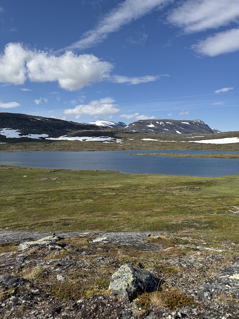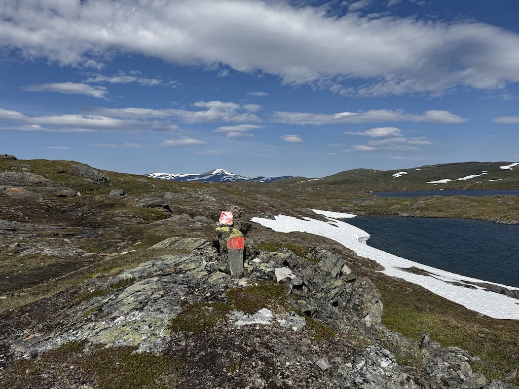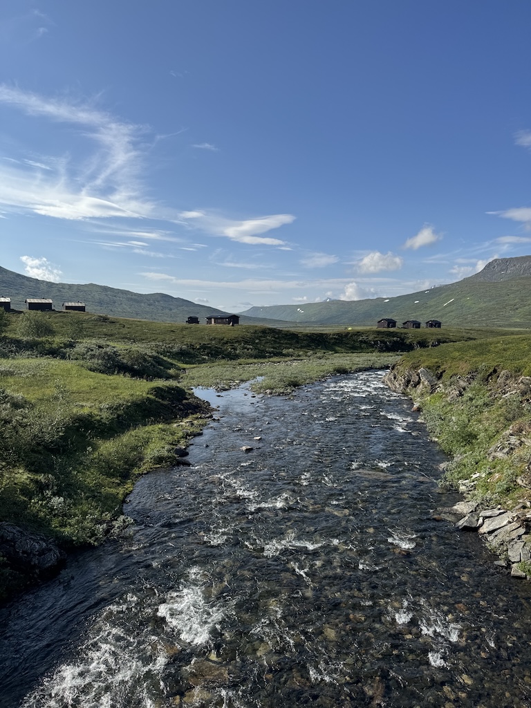 Cloudrock Low WP – im Nachhinein eine sehr gute Entscheidung. Zum Furten habe ich die Innensohle und die Strümpfe ausgezogen. Das hat super geklappt. Allerdings hat oft die Sonne geschienen und die Schuhe waren innerhalb kurzer Zeit wieder trocken. Für das Gelände waren die Schuhe ausreichend und mein Rucksack hatte ein max. Gewicht von 12 kg.